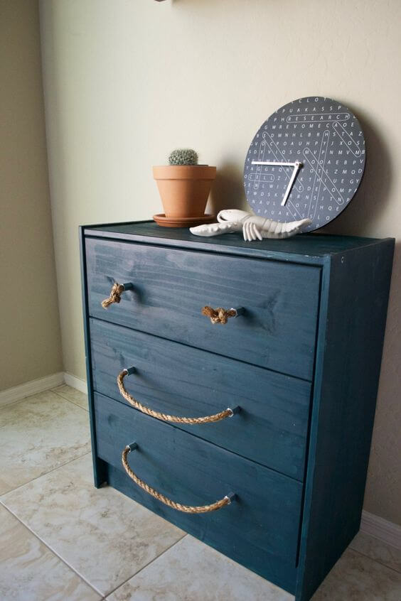 This dresser shows how a small detail like rope handles can completely refresh old furniture. The sturdy jute rope gives the drawers a nautical and rustic touch while keeping them functional and easy to grab.