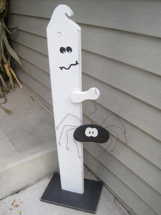 This wooden ghost is the perfect way to add personality to your porch or yard. All you need is a scrap piece of wood, some white paint, and a little creativity.