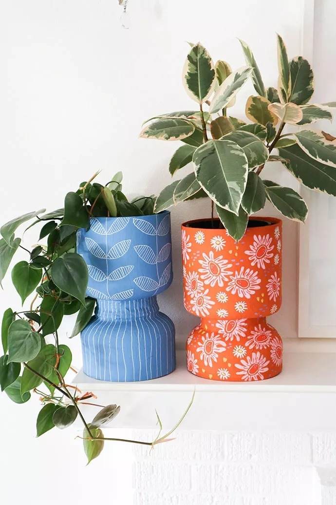 A fabric planter can be made from any type of fabric, such as canvas, denim, burlap, or cotton. Make sure you measure and cut the fabric to fit the planters inside.