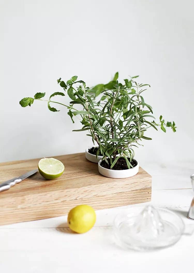 You can have herbs right at your fingertips with this DIY project. It requires making a cutting board and drilling the holes for the pots’ drop holes.