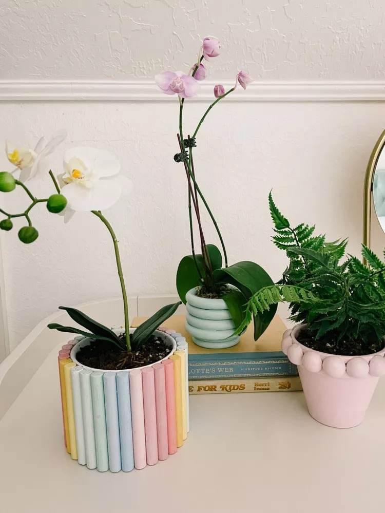 You can create your own clay planters to suit your style instead of buying one. Wrap the clay around the base of your planter or create a pattern with different pieces of clay.