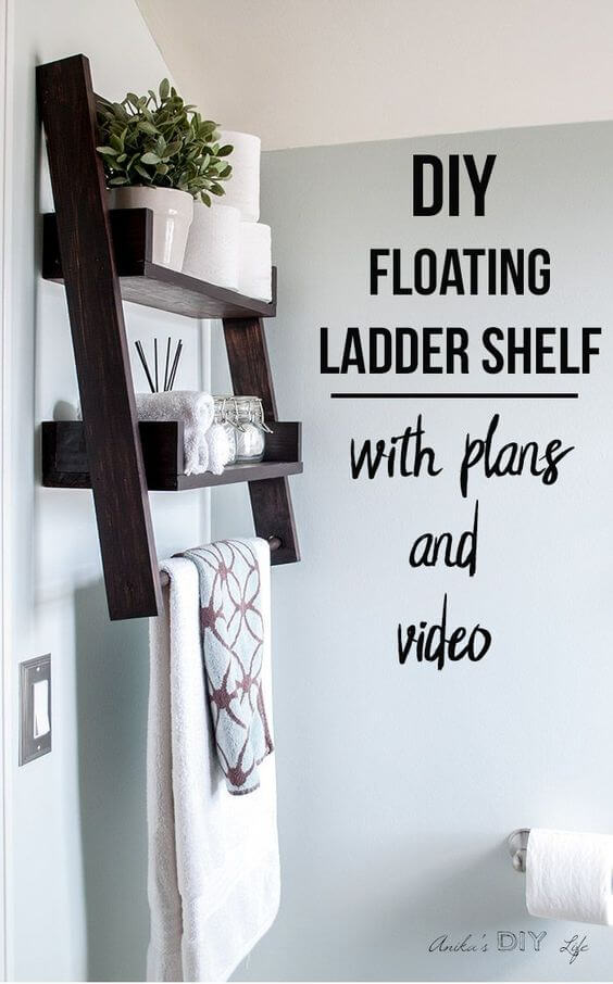 To recreate this idea, use an old ladder or build one with sturdy wooden planks, sanding and staining it to fit your bathroom s style. Place deeper shelves lower for bulkier storage and narrower ones at the top for candles or plants.
