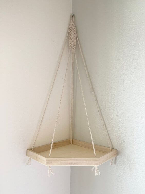 To recreate it, cut a triangular wood piece, drill holes for the rope, and secure it with knots. Hang it from a ceiling or wall hook, adjusting the height as you like. It turns an empty corner into a stylish nook without overwhelming the room.