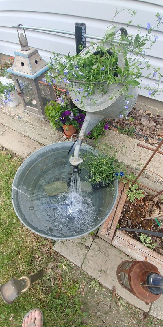 #9 Water Feature Using Old Galvanized Tub And Old Watering Can