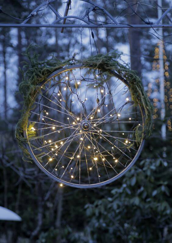 You can also attach solar-powered bulbs for an eco-friendly twist. Use multiple wheels for a layered lighting display. It s simple, effective, and turns any outdoor space into a cozy retreat.