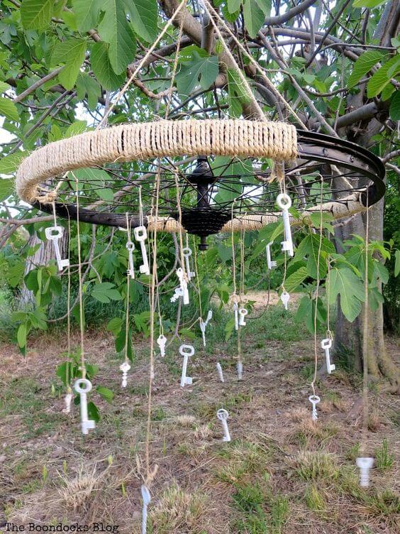 Turn bike chains and gears into an artistic wind chime that sings in the breeze. Clean and spray-paint the parts for a polished finish. Use fishing wire or metal chains to suspend them at varying heights.
