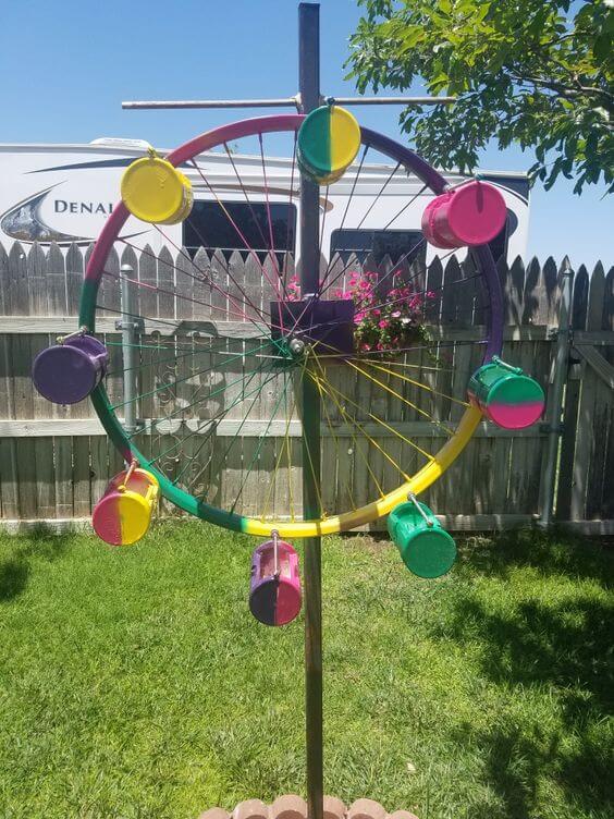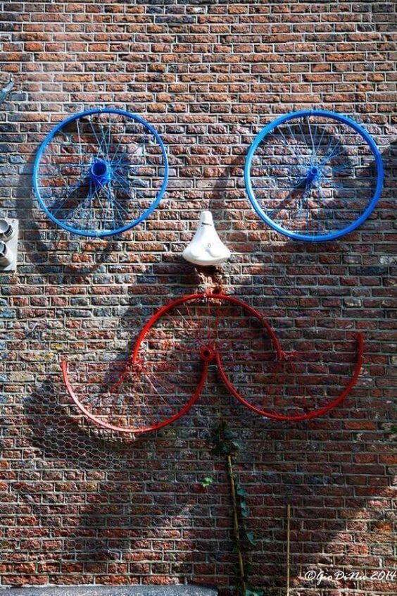 Make your garden lively by painting bike parts in bold colors and displaying them as a sculpture. Combine frames, wheels, and chains into an abstract shape.