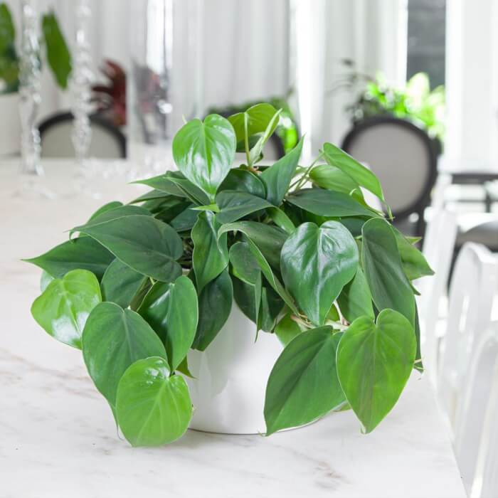 Source: PlanterinaHeartleaf Philodendron is a forgiving and fast-growing vine with rich green leaves. It prefers bright, indirect sunlight and grows well when placed near an east-facing window.