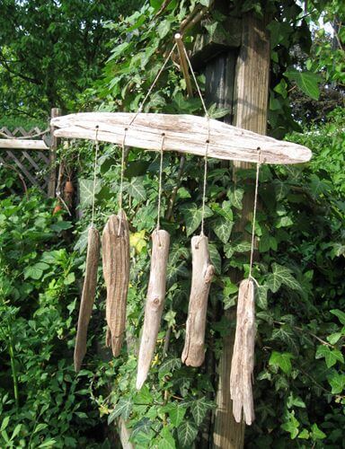 In this craft, driftwood pieces are connected with rope or twine to form a delightful wind chime to add a touch of coastal or rustic charm to your garden or patio.