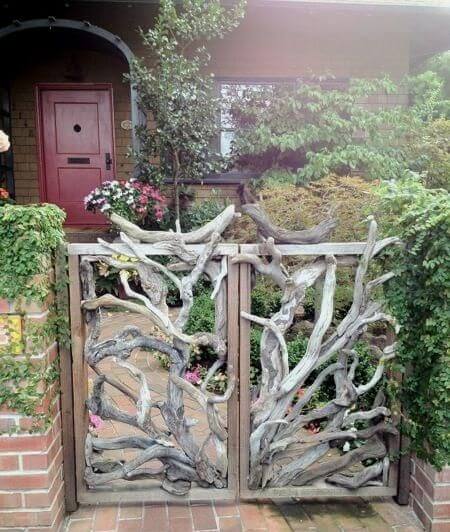 The irregular shapes and textures of driftwood give the gate a distinctive and artistic appearance, making it a focal point and an inviting entrance to your garden or yard.