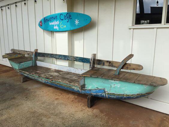 An unused boat can easily become a creative seating area. Cut the boat into halves or sections and add cushions for comfort. Sand the edges to avoid splinters.