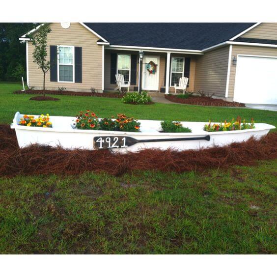 Placing a boat near your house and filling it with wildflowers makes a charming display. Scatter seeds of daisies, cosmos, or sunflowers for a natural look.