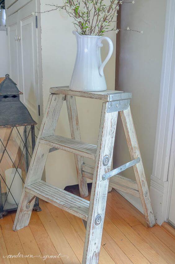 This rustic ladder side table proves that simple pieces can make the strongest statements. An old step ladder, lightly distressed and painted in a soft wash, transforms into a charming accent table that feels both vintage and stylish.