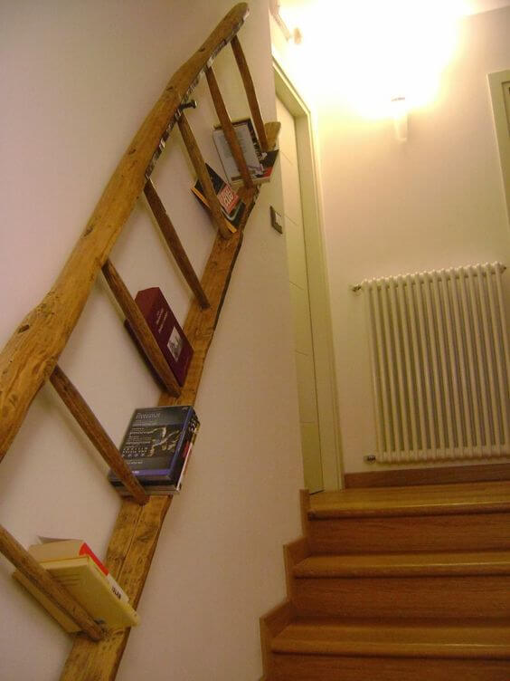 Here s a clever way to give an old ladder a second life by turning it into a built-in bookshelf along your staircase wall.