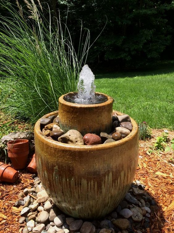 Run the tubing through the center and let the water spill naturally between the pots. Add a few smooth stones for texture and visual balance. It s a simple, budget-friendly fountain that feels both rustic and soothing.