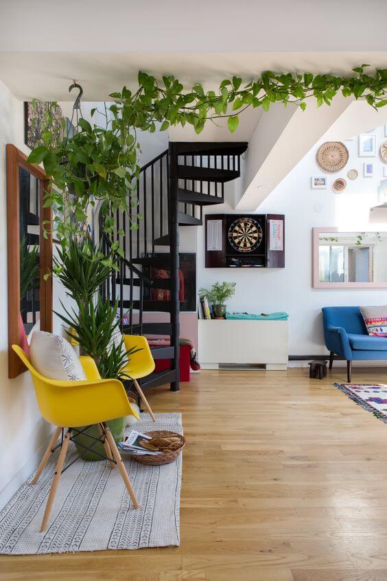 Simply, just placing a tree pot or a hanging basket in any of your rooms, you can turn reinforced concrete spaces and blank walls into soft and elegant places.