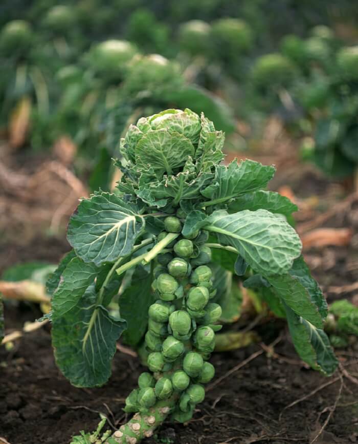 Brussels sprouts thrive in cooler, shaded spots and can even be harvested in winter. Plant them in rows with enough space for tall stems.
