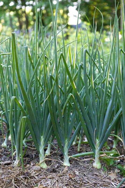 Harvest once the leaves turn yellow and dry. Shady conditions help prevent the soil from overheating during bulb formation.