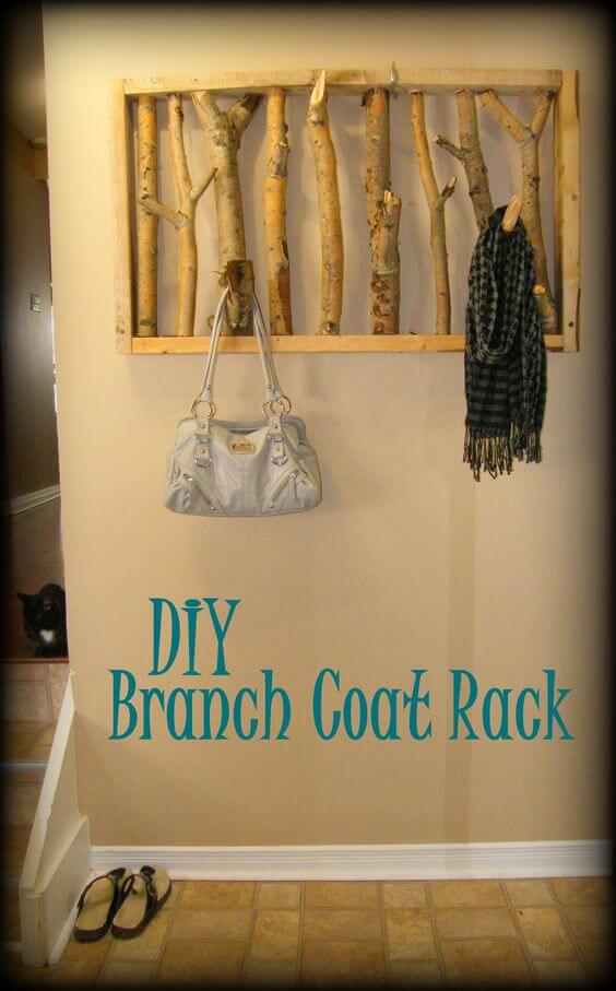 This branch coat rack is a simple yet charming way to bring nature into your entryway. Using a wooden frame and several sturdy branches, you can create a rustic piece that s both practical and decorative.