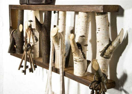 The branches are mounted on a sturdy wooden frame that also serves as a shelf for extra storage. It s a rustic yet stylish way to bring the outdoors in while keeping your essentials organized and within easy reach.