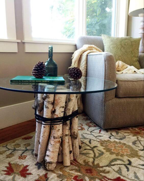 To DIY, gather straight birch logs, trim them to the same height, secure them with rope or metal bands, and top with a pre-cut glass circle. It s a perfect accent for a cozy reading nook or cabin-inspired living space.