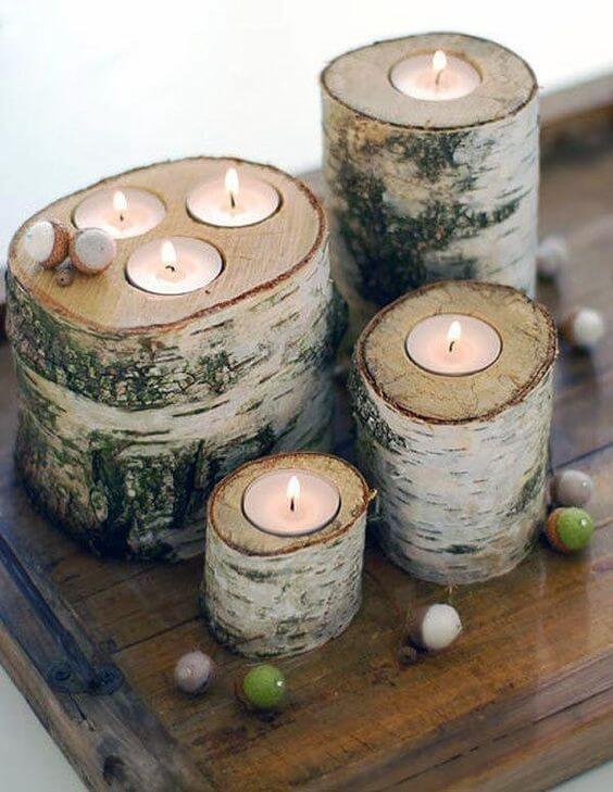 These rustic birch log candle holders bring a cozy, woodland charm to any space. Crafted from real birch trunks of varying heights, each piece is hollowed at the top to snugly fit a tealight candle.