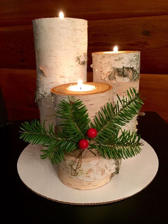 I created these rustic birch log candle holders for a cozy winter centerpiece, and they add warmth and natural charm to any room.