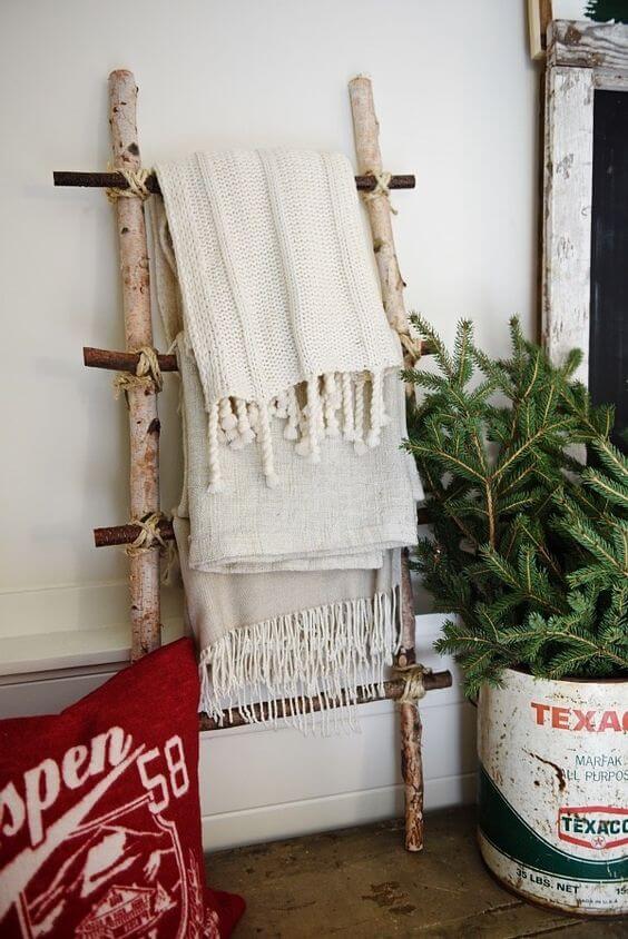 Step 4: Stand the ladder upright and place blankets or throws over the rungs for a functional, natural décor piece.