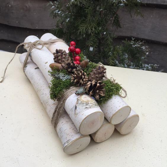 #2. A Bundle Of Birch Log For Christmas Decoration