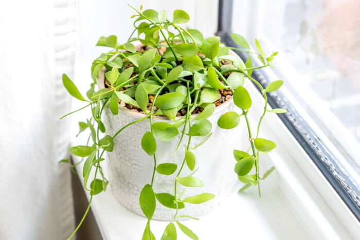 String of Nickels gets its name from its round, coin-shaped leaves. The cascading vines look especially beautiful in hanging planters. Grow it in bright, filtered light and allow the soil to dry slightly before watering again.