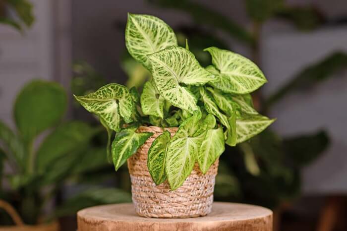 You can grow it in a hanging basket or train it up a support. Its arrow-shaped leaves often display variegated patterns, adding color and character. This plant adjusts well to indoor conditions and grows quickly.