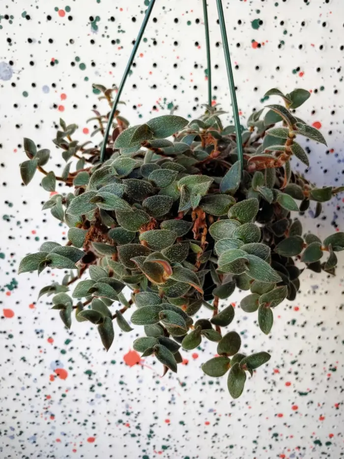 Teddy Bear Vine earns its name from the fuzzy, chocolate-brown leaves shaped like teardrops. It trails gently, making it perfect for hanging pots. Grow it in bright, indirect light and water moderately.