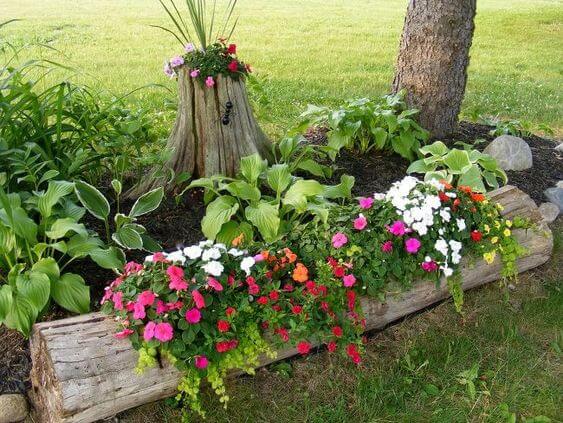 The natural and textured appearance of the logs adds an earthy and welcoming touch to your garden. Log flower beds are not only aesthetically pleasing but also provide practical benefits, such as improved soil retention and drainage.
