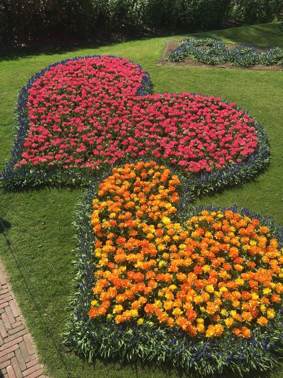 This romantic and endearing addition to any garden or outdoor landscape features a flower bed meticulously shaped in the form of a heart, creating a symbol of love and affection using vibrant and colorful flowers.