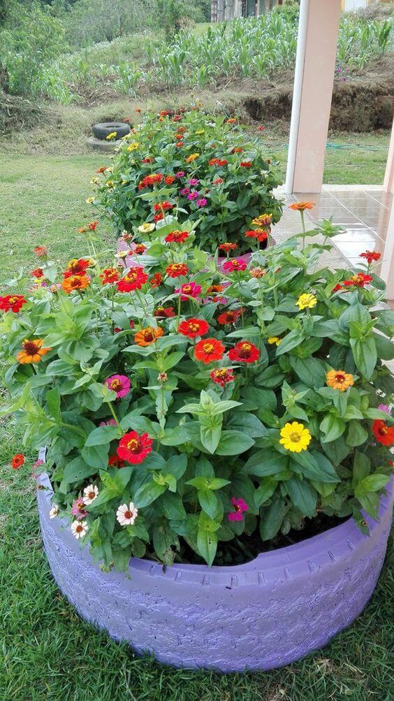 This sustainable gardening approach not only recycles old tires but also provides an easy and affordable way to create elevated garden beds. The circular shape of the tires adds a unique and playful aspect to your garden, and their durability makes them suitable for a wide range of plant types.