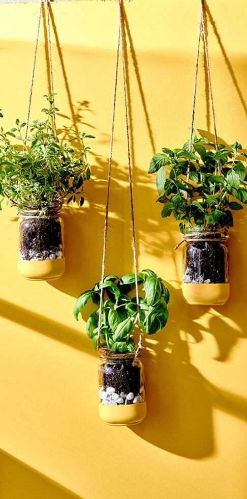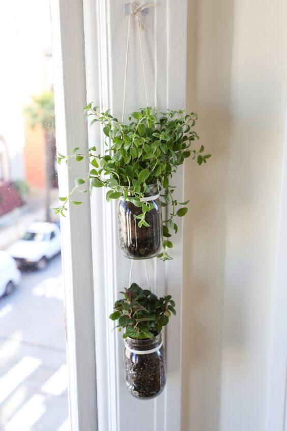 Source: OnelombardMason jars never looked so lively. This simple yet stylish herb garden transforms two classic jars into hanging planters, perfect for a sunny window frame.