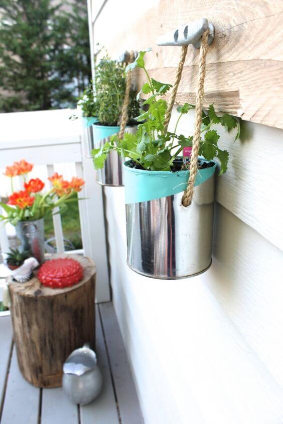 Source: SimplestylingsThis eye-catching setup turns plain paint cans into polished herb planters with a modern twist. A pop of color at the rim brings personality, while the rope and cleat combo gives it a sturdy, nautical vibe.