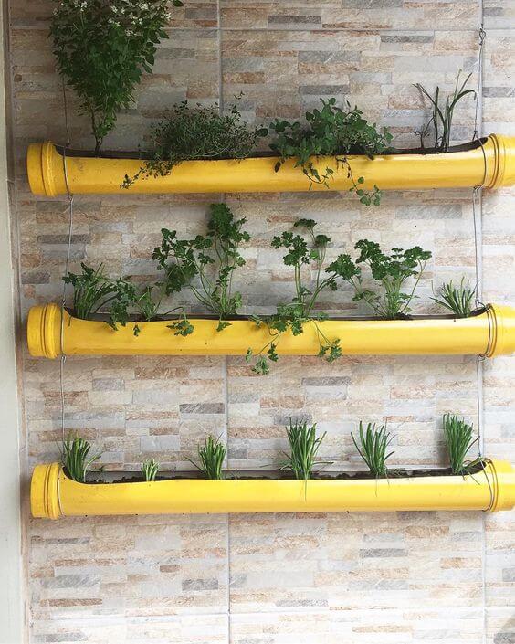 Source: TuacasaBright and playful, this yellow bamboo-style herb garden instantly livens up a dull wall. Crafted from hollowed pipes painted sunny yellow, it holds rows of herbs neatly while adding a pop of color.