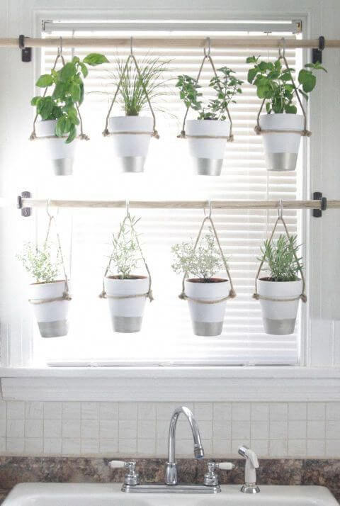 Source: CountrylivingPerfectly aligned above your kitchen sink, this charming setup turns every cooking session into a garden stroll. Two rods mounted on the window frame hold matching pots filled with herbs like basil, rosemary, and thyme.