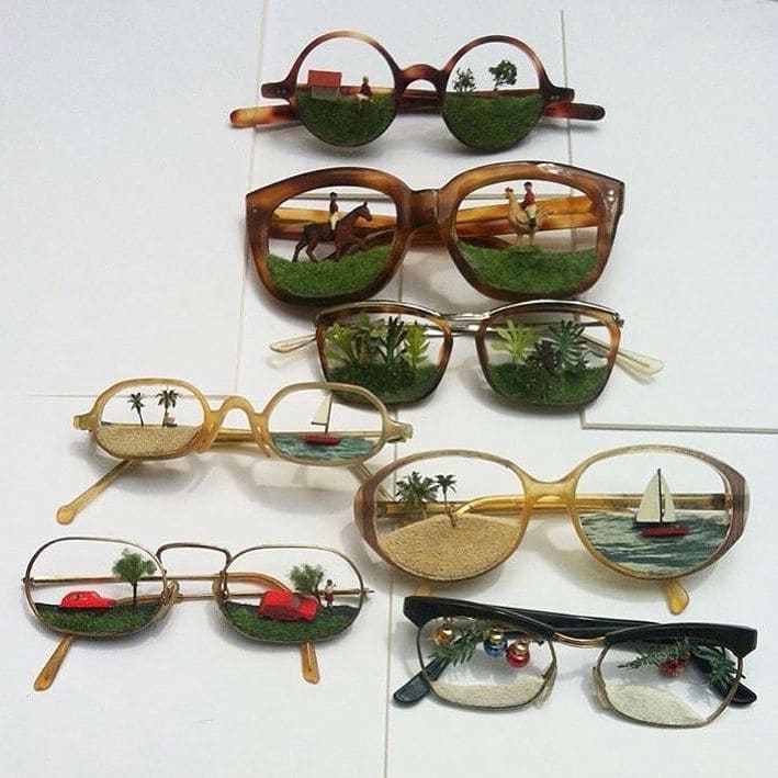 These whimsical glasses are windows into tiny, dreamy worlds. From sandy beaches to horse paddocks, every frame holds a story frozen in time.