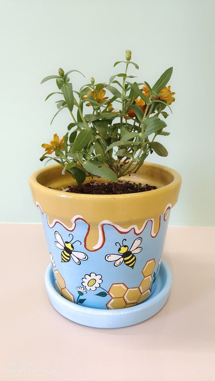 I created this honey-themed pot as a tribute to the little pollinators who keep my garden blooming.