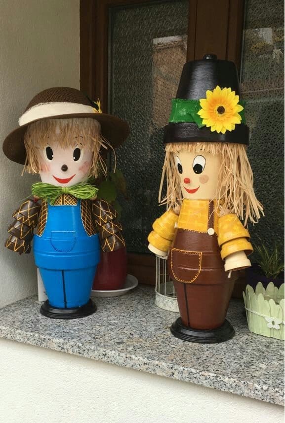 With straw hair, painted outfits, and wide, friendly smiles, they make the perfect fall or harvest-themed porch decor.
