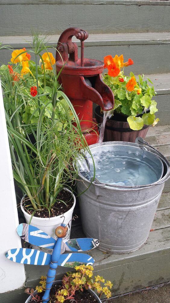 Give an antique hand pump a second life by turning it into a charming fountain. Attach a small water pump and hose inside, allowing water to trickle naturally from the spout.