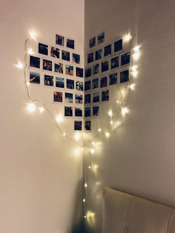 #3 Family Photos with Heart-Shaped Wall Decor and String Lights
