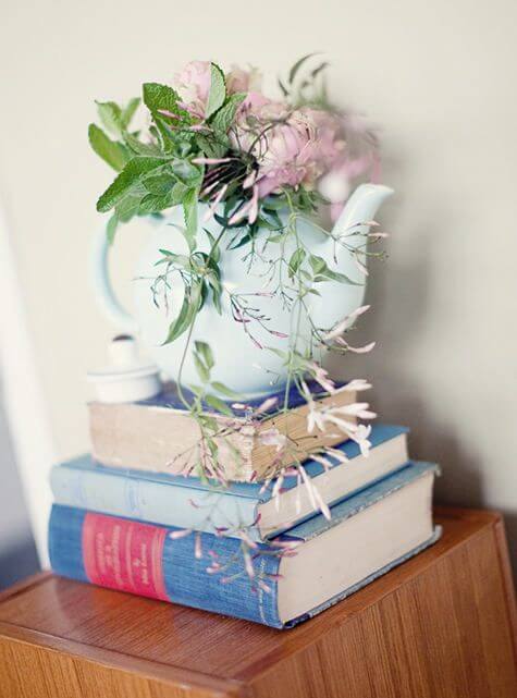 An old teapot filled with soft blooms and greenery makes such a romantic display. The way the flowers spill over the edge gives it an effortless, garden-fresh charm.