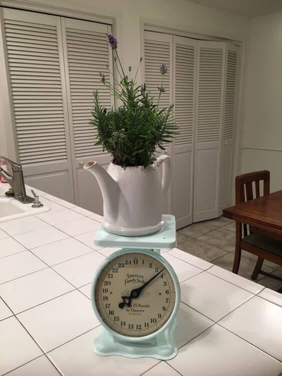 Lavender looks even more charming when it s tucked inside an old teapot. The classic white teapot gives the plant a clean, vintage look while the tall lavender stems add fragrance and beauty to your kitchen or dining area.