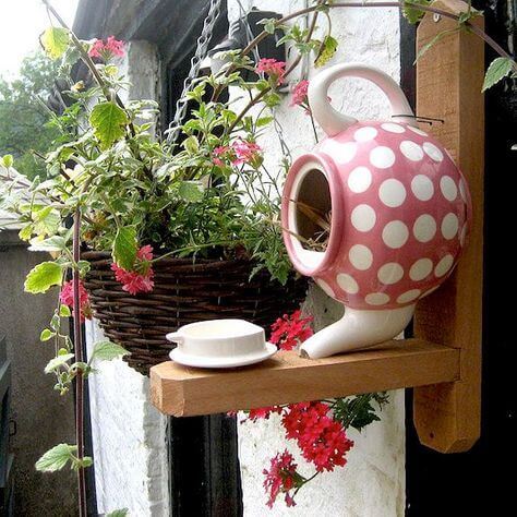 Turning a vintage teapot into a birdfeeder is such a sweet way to welcome wildlife into your garden. Simply hang the teapot by its handle using a sturdy chain or rope, then fill it with birdseed so little feathered friends can perch and enjoy a meal.