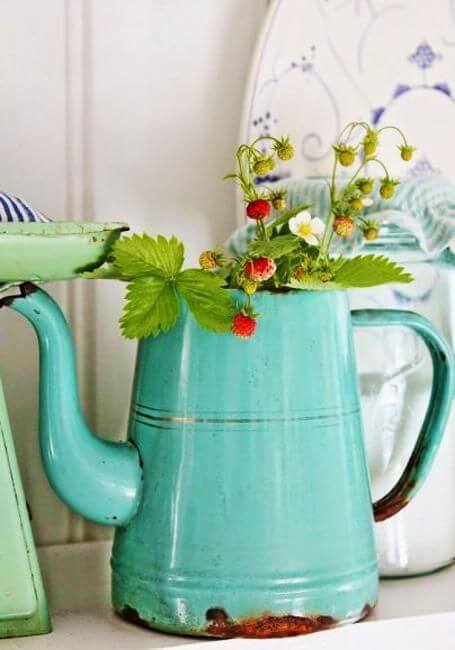 It s a creative way to let an old teapot shine again while adding freshness to your shelves. Simply rinse the pot well, fill it with a little soil, and tuck in your favorite small plant.