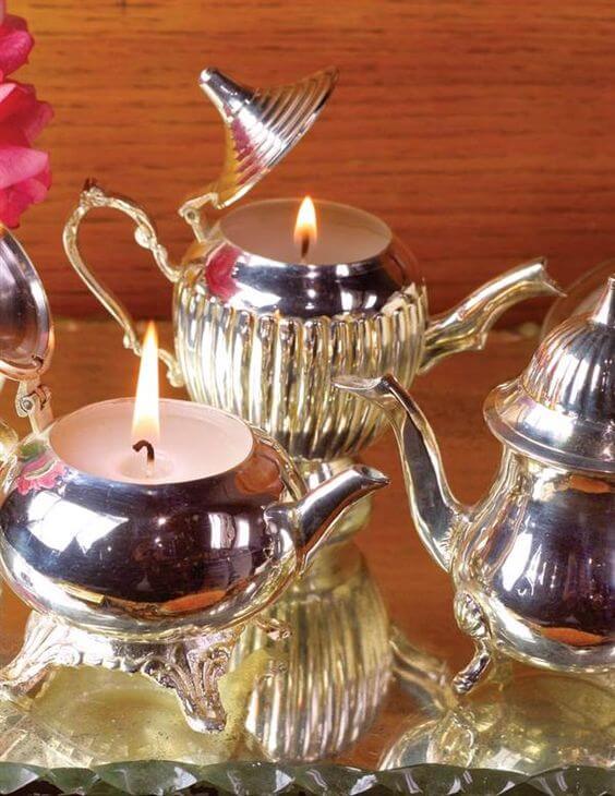 These teapot candles are such a charming way to give new life to vintage silver teapots. Their reflective shine adds an elegant glow, making them perfect for cozy evenings or as a centerpiece at gatherings.