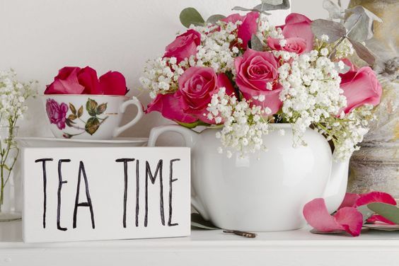 Turning a teapot into a flower vase brings instant charm to any corner of your home. The smooth white teapot makes the perfect backdrop for the bold pink roses and delicate baby s breath, creating a cheerful, romantic arrangement.